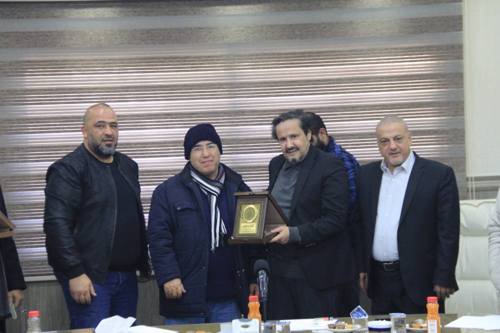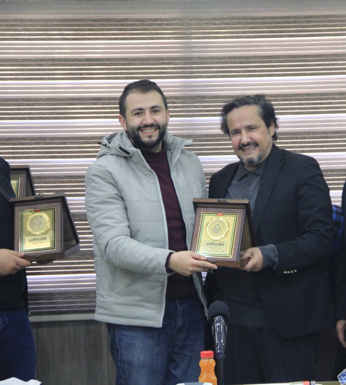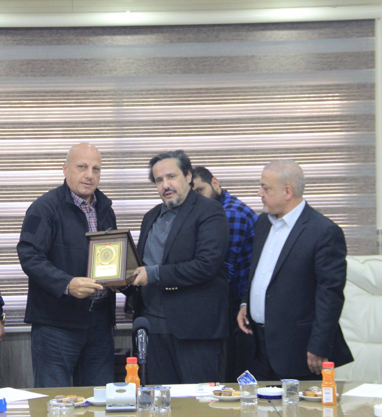 وفي ختام الحفل قام نقيب المقاولين بتسليم السادة المندوبين المشاركين دروع تكريمية تقديراً معنوياً لما تم إنجازه ولجهودهم الطيبة في إنجاح هذه اللجنة.