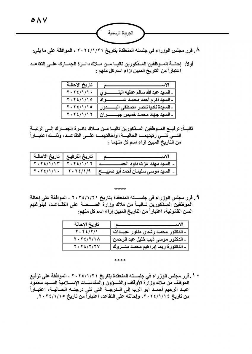 صدر في عدد الجريدة الرسمية اليوم الخميس، قرارات مجلس الوزراء بإحالة عدد من موظفي الدولة إلى التقاعد، وانهاء خدمات آخرين.