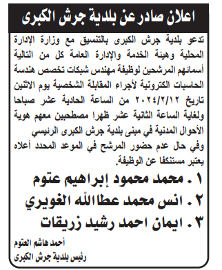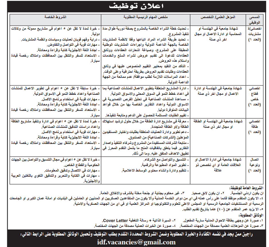 أعلنت مؤسسات ووزارات وجامعات عن توفر شواغر لديها في عدة تخصصات.