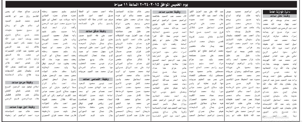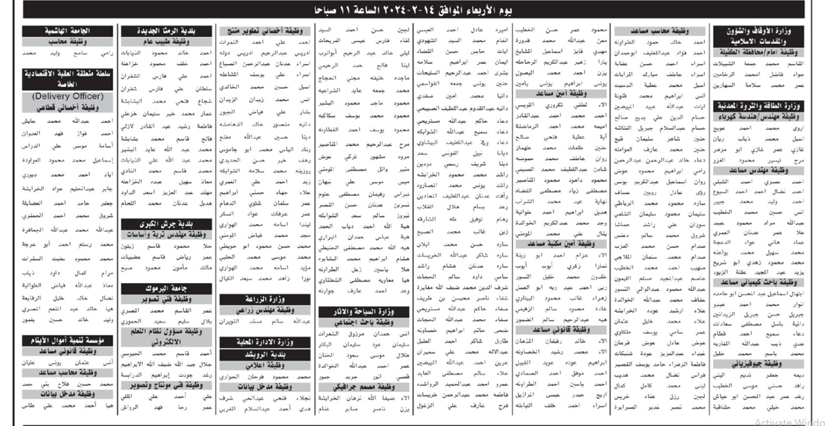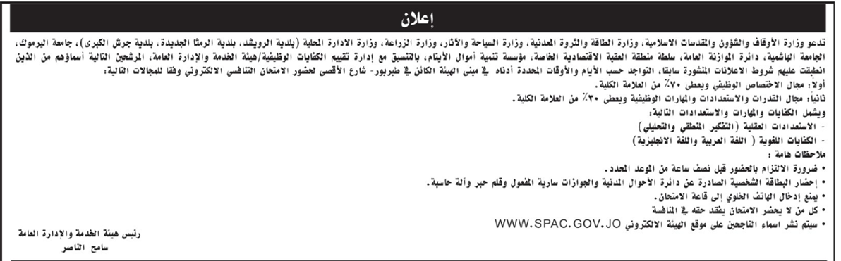 دعت عدة مؤسسات ووزارات بالتنسيق مع إدارة تقييم الكفايات الوظيفية / هيئة الخدمة والإدارة العامة، المرشحين التالية اسمائهم لتقديم الامتحان التنافسي.