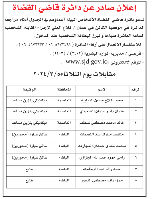 وظائف شاغرة ومدعوون للتعيين - أسماء