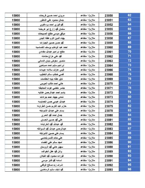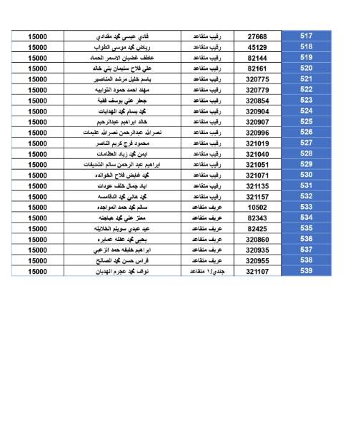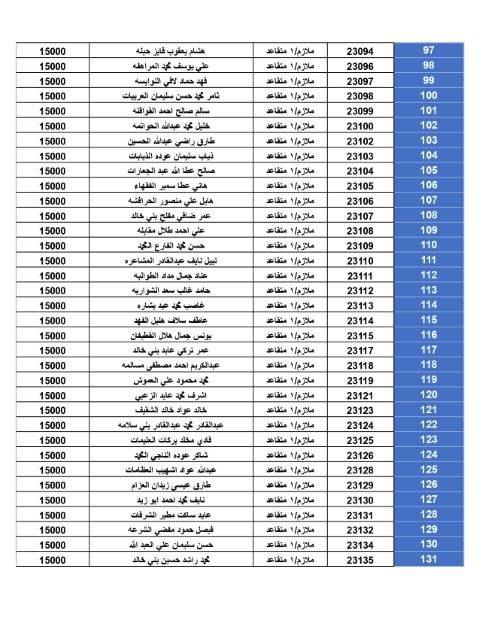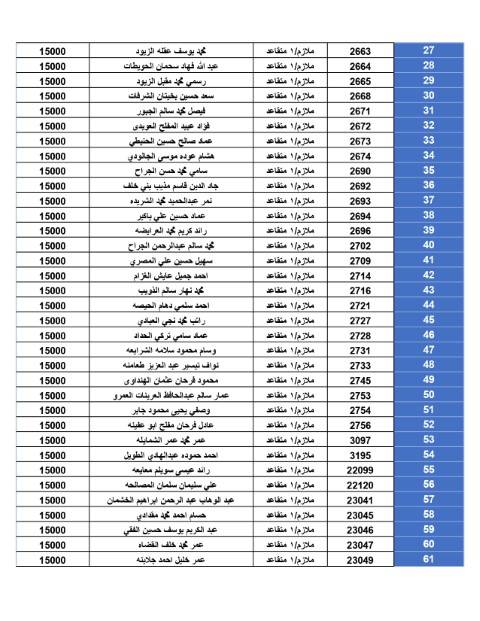 أعلنت القيادة العامة للقوات المسلحة الأردنية – الجيش العربي/ مديرية مؤسسة الإسكان والأشغال العسكرية، بأن الضباط وضباط الصف والأفراد المبينة أسماؤهم قد استحقوا قرض الإسكان العسكري.