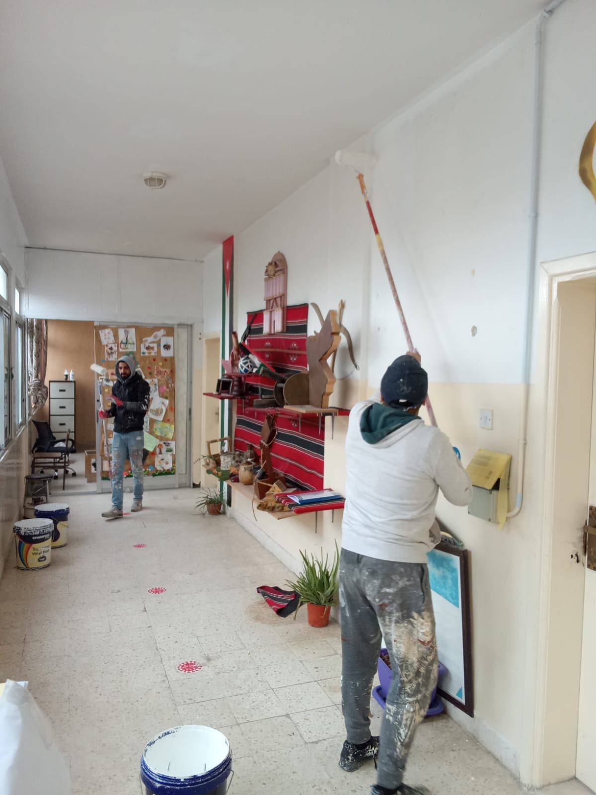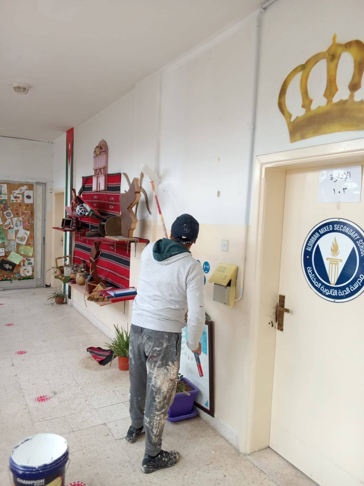 اطلع رجل الأعمال المهندس إبراهيم الخليف المناصير على سير أعمال الترميم والتحديث في مدرسة الدبة الثانوية المختلطة وانهاء الأعمال في مدرسة الألمانية الثانوية للبنات في منطقة وادي السير.