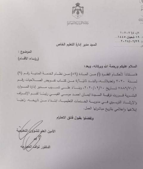 ترقية موظفين في وزارة التربية والتعليم - أسماء