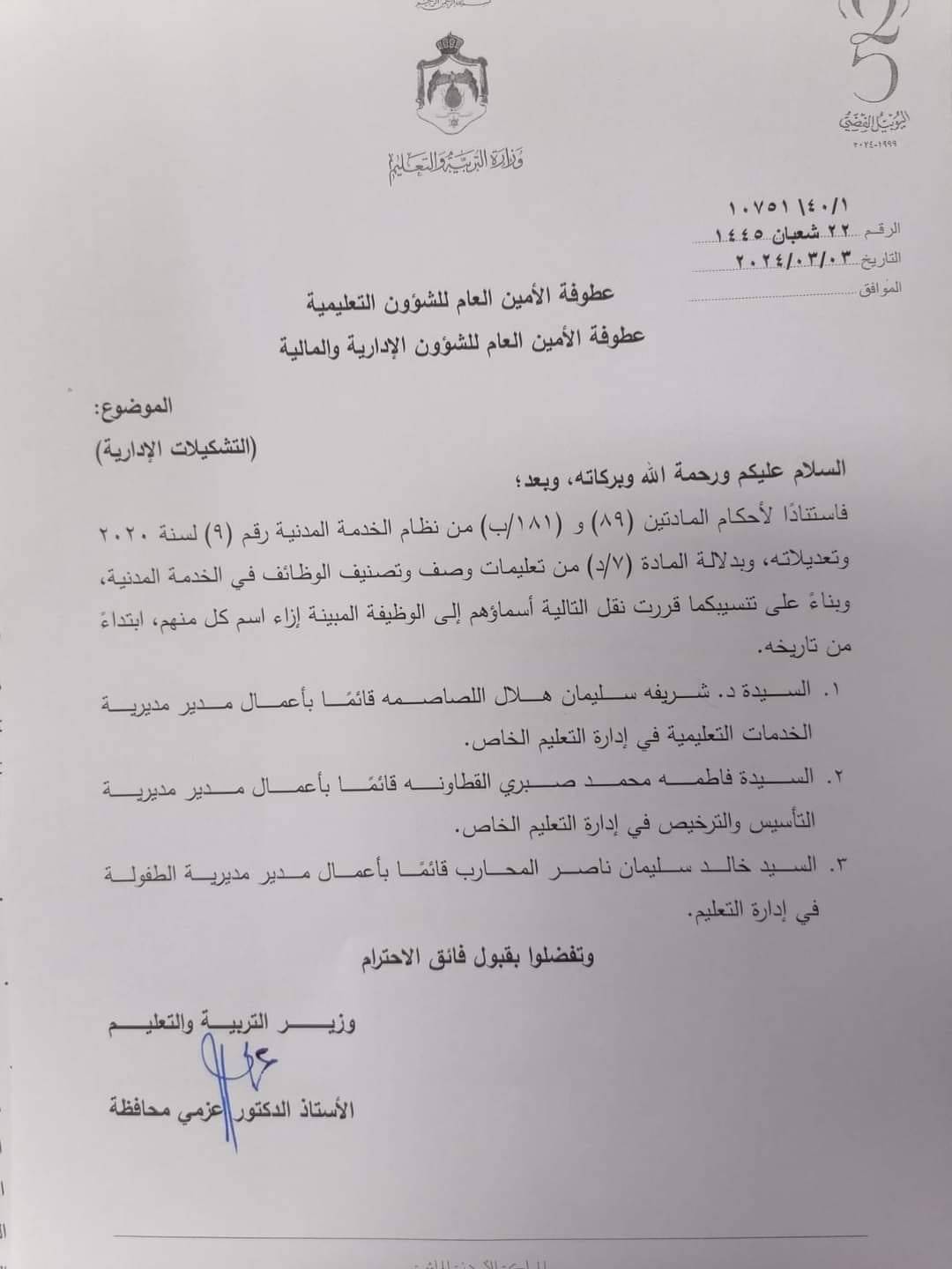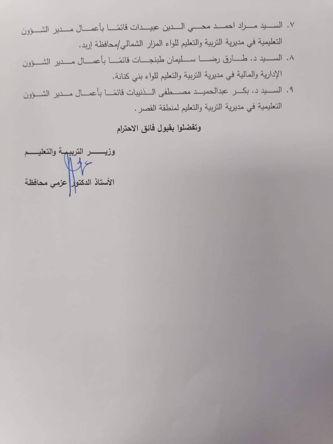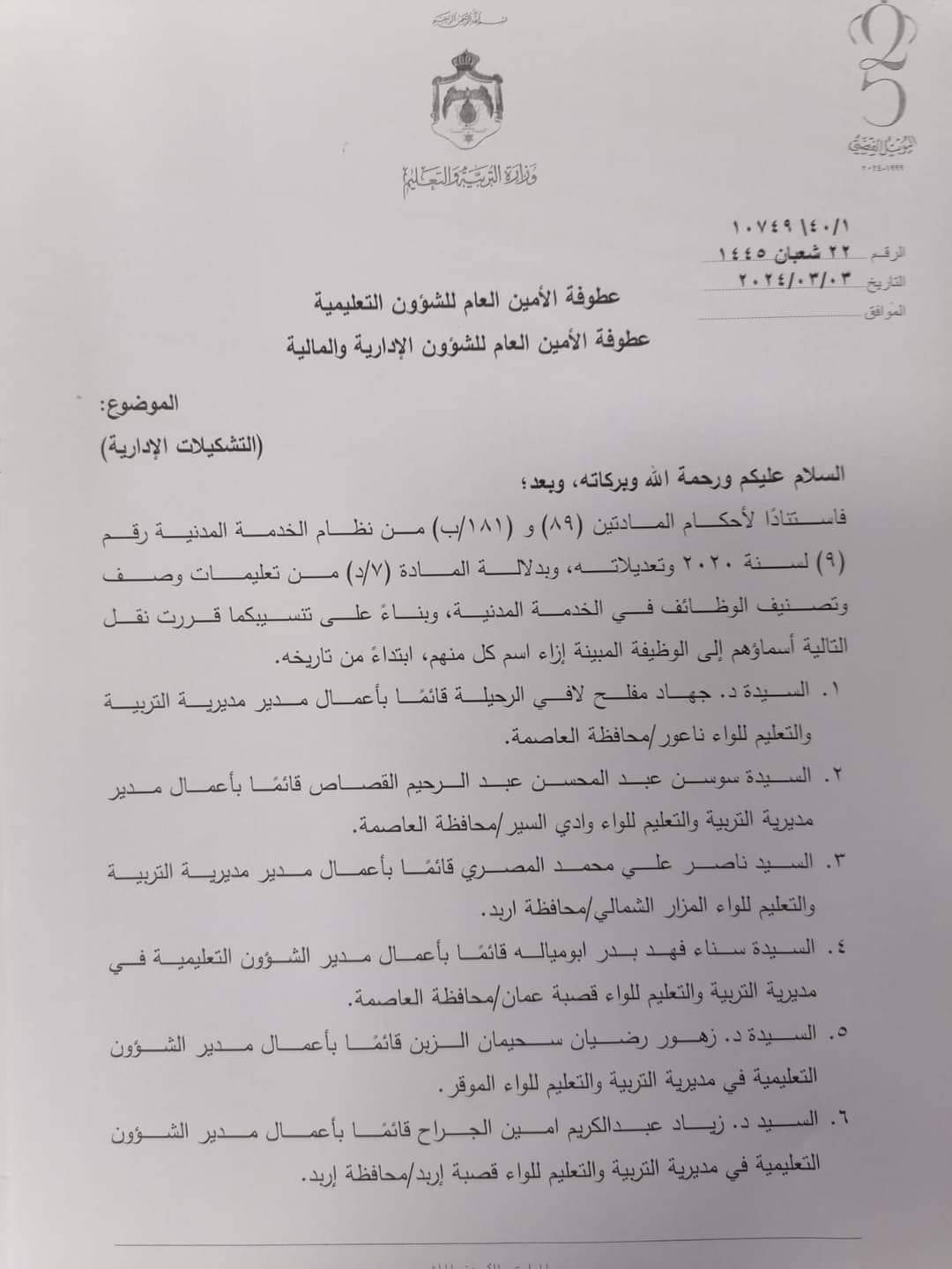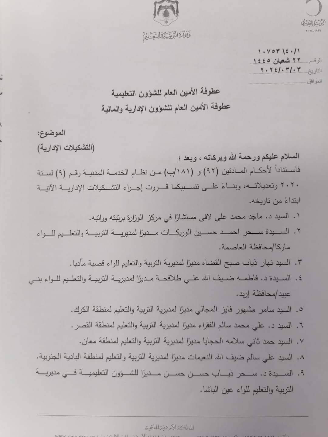 تشكيلات وتنقلات وتكليفات في التربية - أسماء