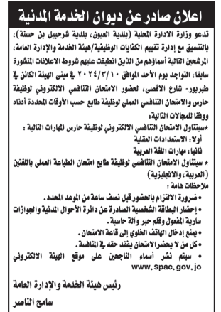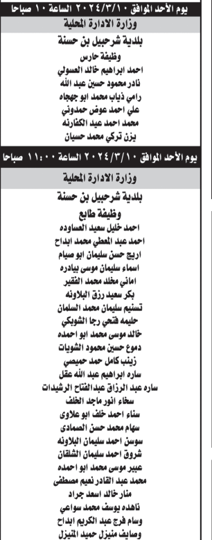 ودعت عدد من الوزارات والبلديات مرشحين لإجراء الاختبار التنافسي.