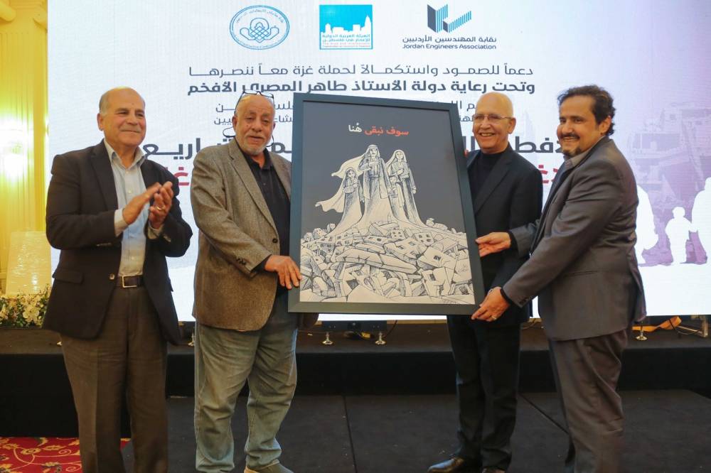بدوره أكد رئيس الوزراء الأسبق طاهر المصري أن الصمود الأسطوري للشعب الفلسطيني يساهم في الحفاظ على أرض فلسطين المحتلة، وأن جلالة الملك والأردنيين يقومون بدور مميز في دعم الأشقاء في غزة.
