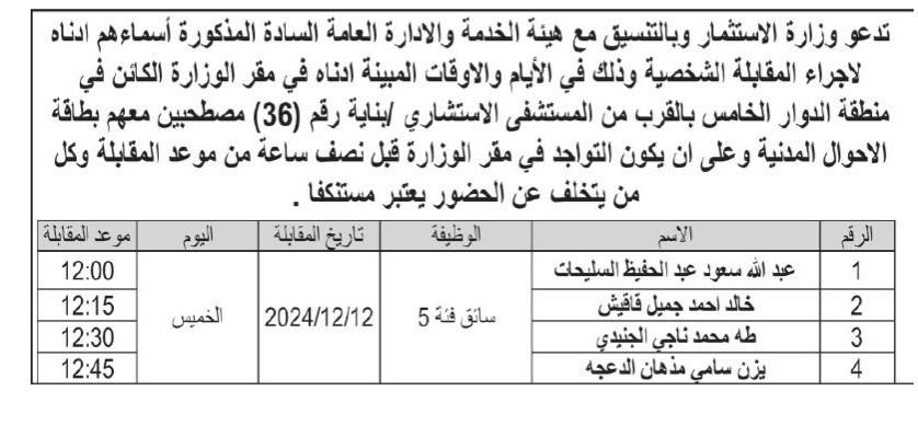 بالأسماء.. مدعوون للامتحان التنافسي والمقابلة الشخصية