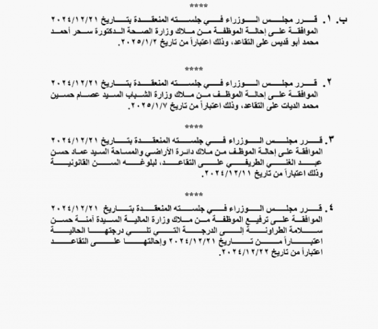الأردن ... موظفون حكوميون إلى التقاعد (أسماء)