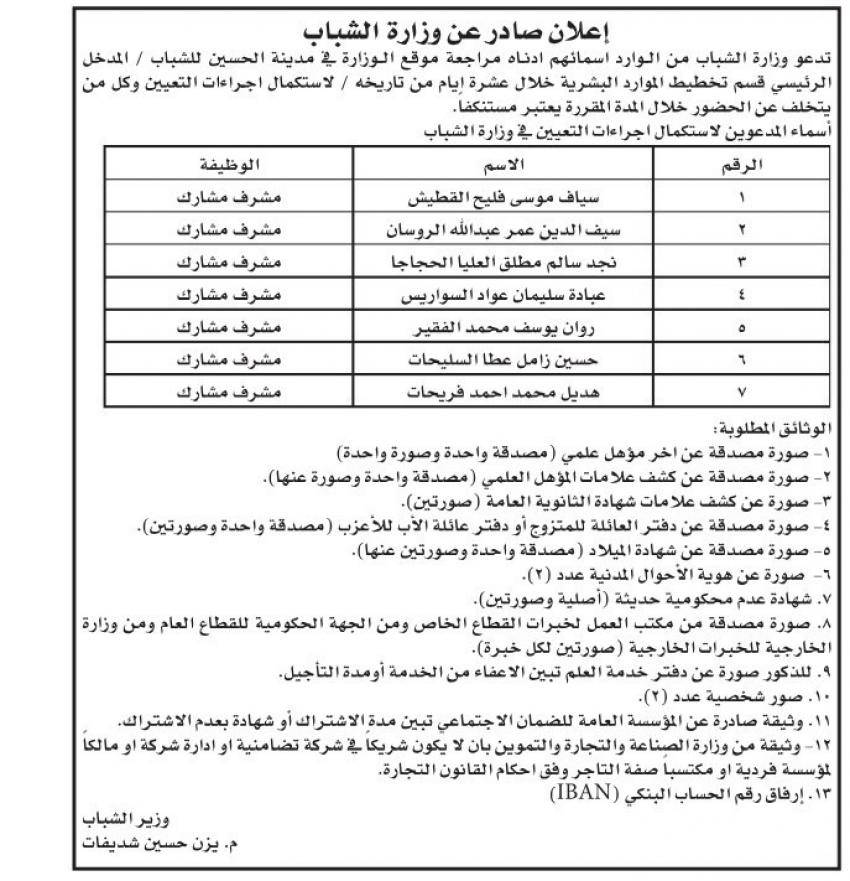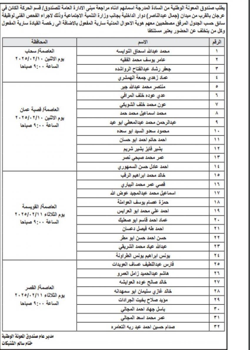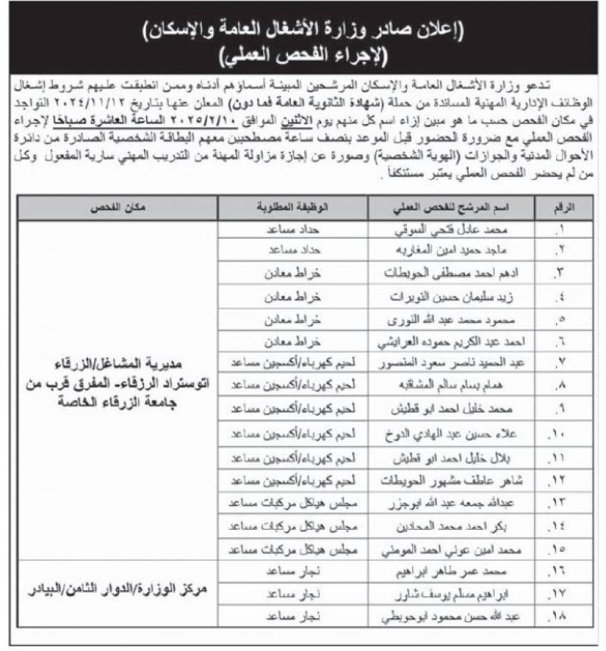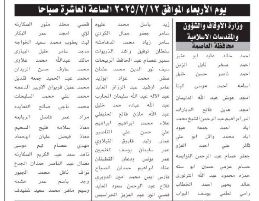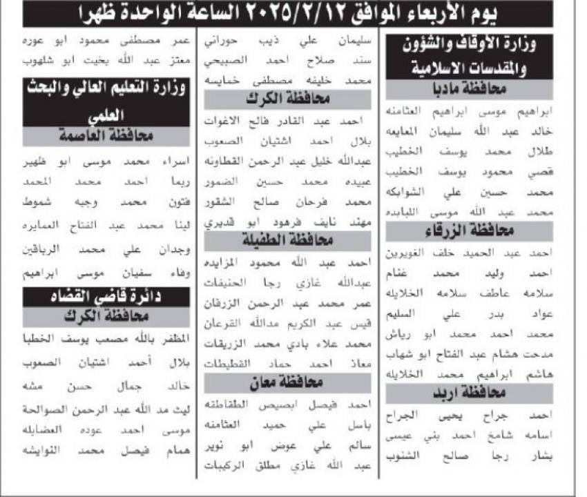 دعت دوائر حكومية ومؤسسات رسمية ،الخميس، مرشحين لغايات اجراء المقابلات الشخصية واستكمال اجراءات التعيين .