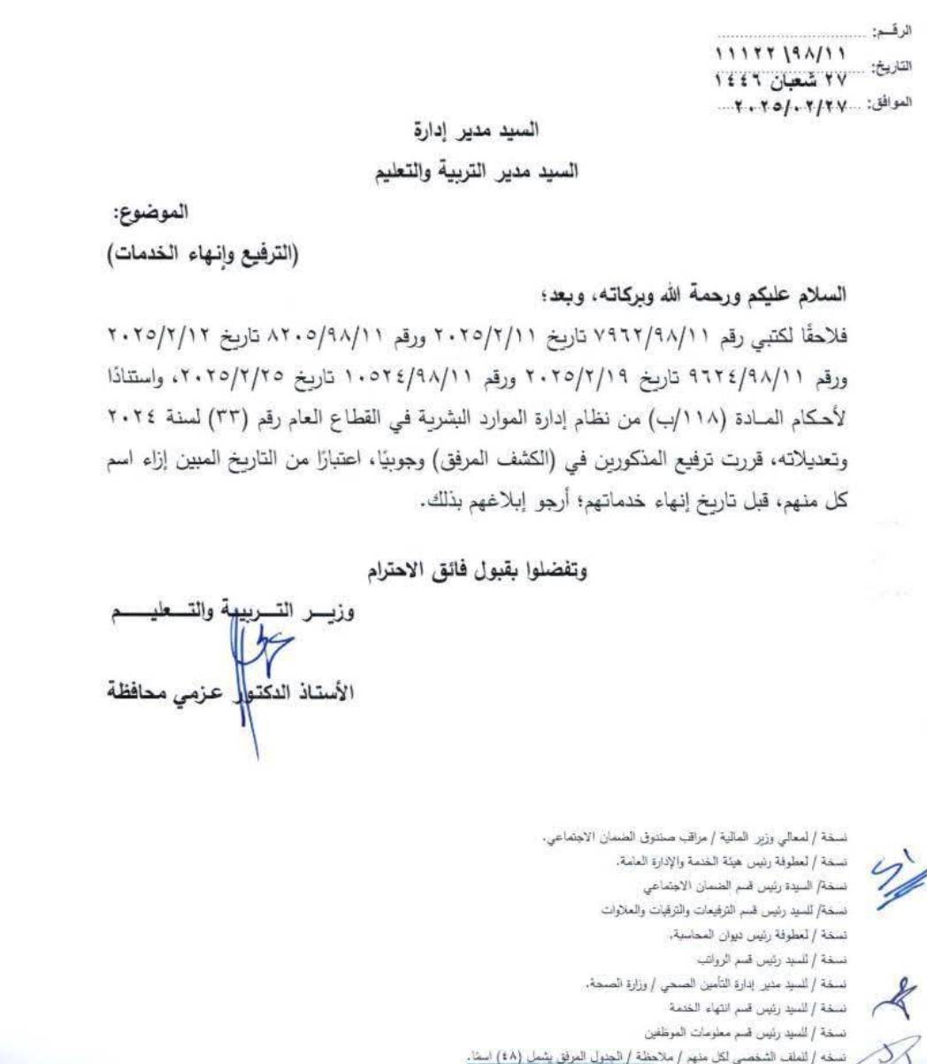 إنهاء خدمات العشرات من موظفي التربية (أسماء)