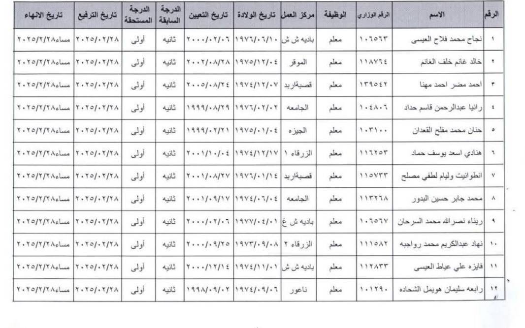 قرر وزير التربية والتعليم الدكتور عزمي محافظة، ترفيع العشرات من الموظفين وإنهاء خدماتهم.