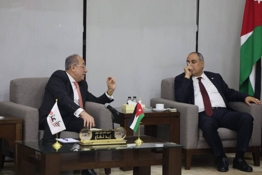 عقد حزب عزم برئاسة الامين العام للحزب  المهندس زيد نفاع وبحضور اعضاء المكتب السياسي وكتلة حزب عزم النيابية ( ١٩ نائبا )   لقاءة الدوري والتشاوري وذلك مساء اليوم  الأحد بتواجد رئيس اتحاد النقابات العمالية ورؤساء النقابات العمالية حيث يحظى أعضاء الحزب برئاسة ٧ نقابات عمالية