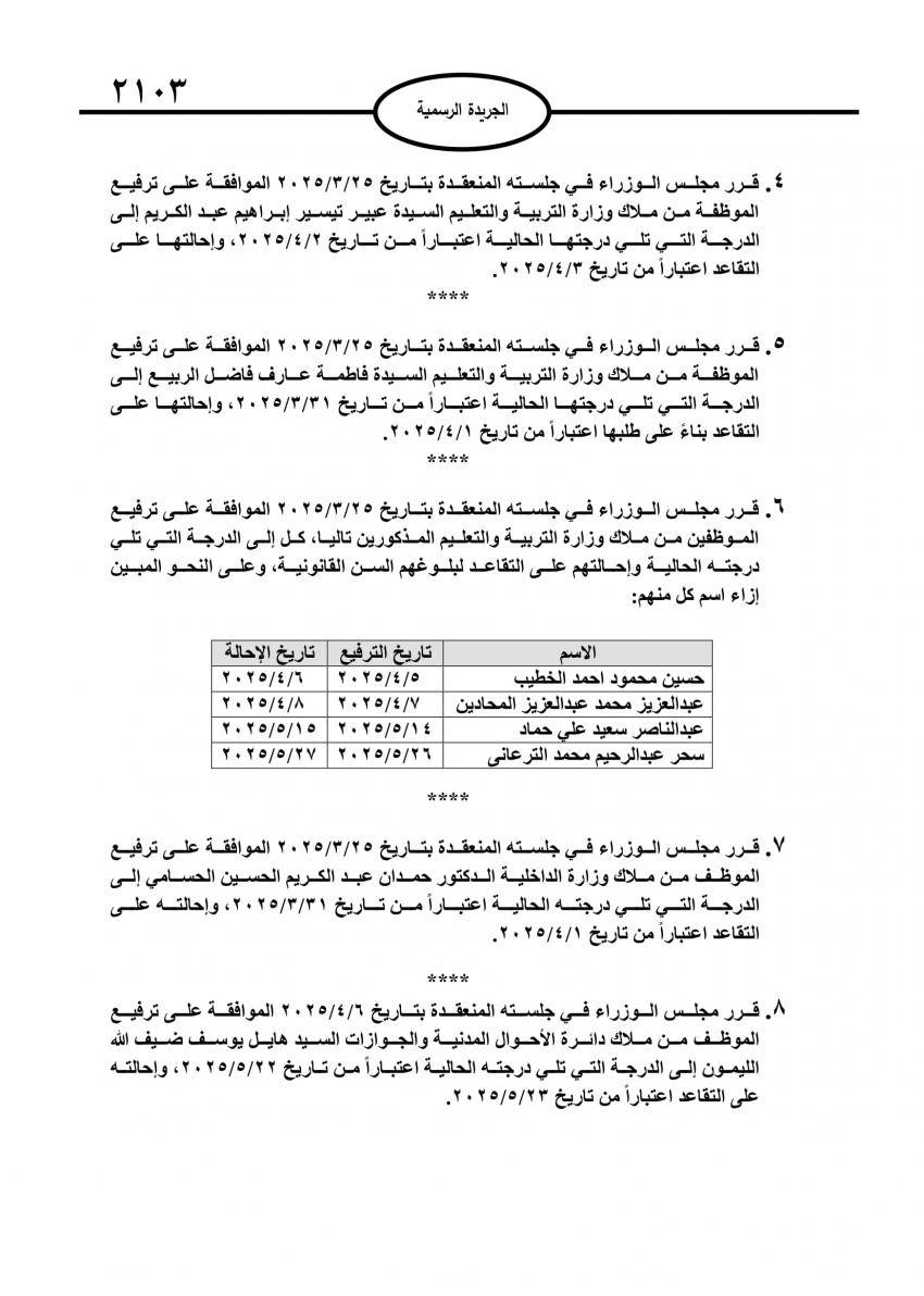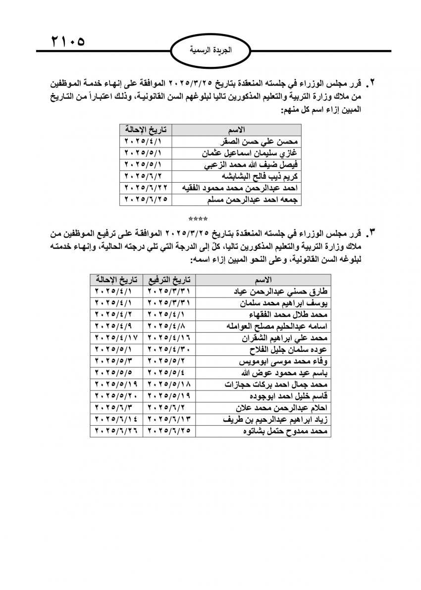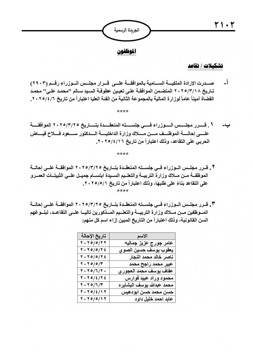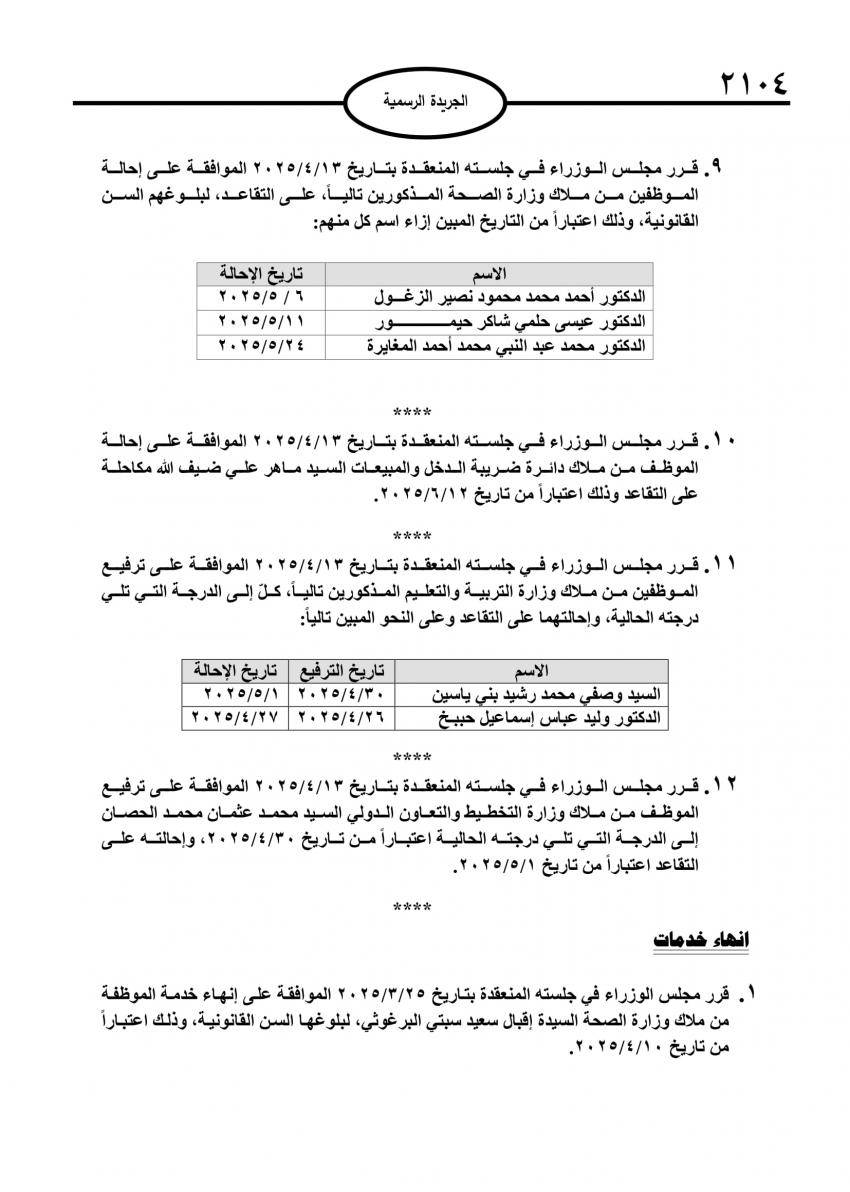 صدر في عدد الجريدة الرسمية اليوم الاربعاء، قرارت مجلس الوزراء باحالة عدد من موظفي الدولة إلى التقاعد، وانهاء خدمات اخرين.