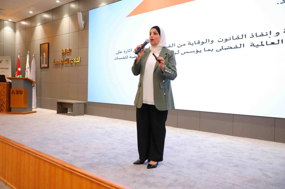 وتضمّن حفل إطلاق المبادرة التي حضرها من الهيئة مدير مديرية النزاهة والوقاية ومديرة وحدة الإعلام والاتصال والعلاقات العامة، ورشة عمل توعويّة قدّمها فريق من قسم التوعوية في مديرية النزاهة والوقاية في الهيئة، شملت عروضاً تقديمية وشروحاً تفصيلية حول آليات عمل الهيئة في محوري إنفاذ القانون والوقاية والنزاهة، والتعريف بمعايير النزاهة الوطنية، مستعرضين حالات عملية لعددٍ من القضايا التي تعاملت معها الهيئة، كما أكد فريق التوعية خلال الورشة أهمية إشراك الجامعات كبيئات حاضنة للفكر الشبابي في جهود تعزيز النزاهة والشفافية، ودور هذه المبادرة في استثمار قطاعات الشباب الجامعي في المساهمة بنشر ثقافة النزاهة، وتعزيز الوعي بأهمية احترام سيادة القانون وترسيخ مبادئ العدالة والمساواة وتكافؤ الفرص ونبذ كافة أشكال الفساد.