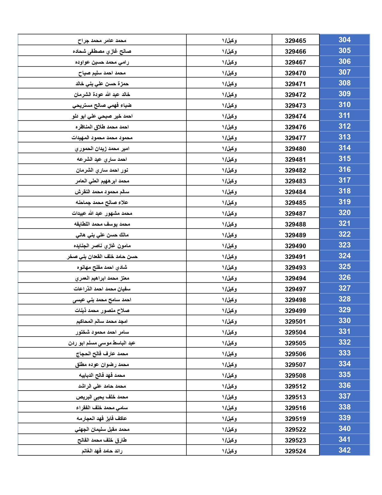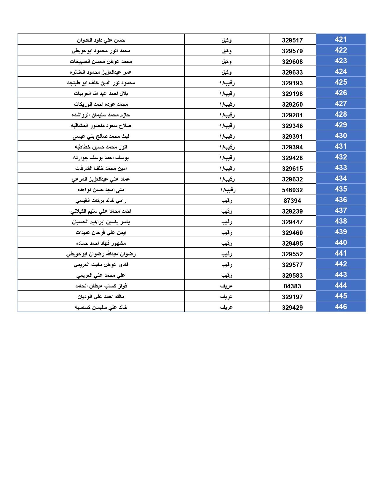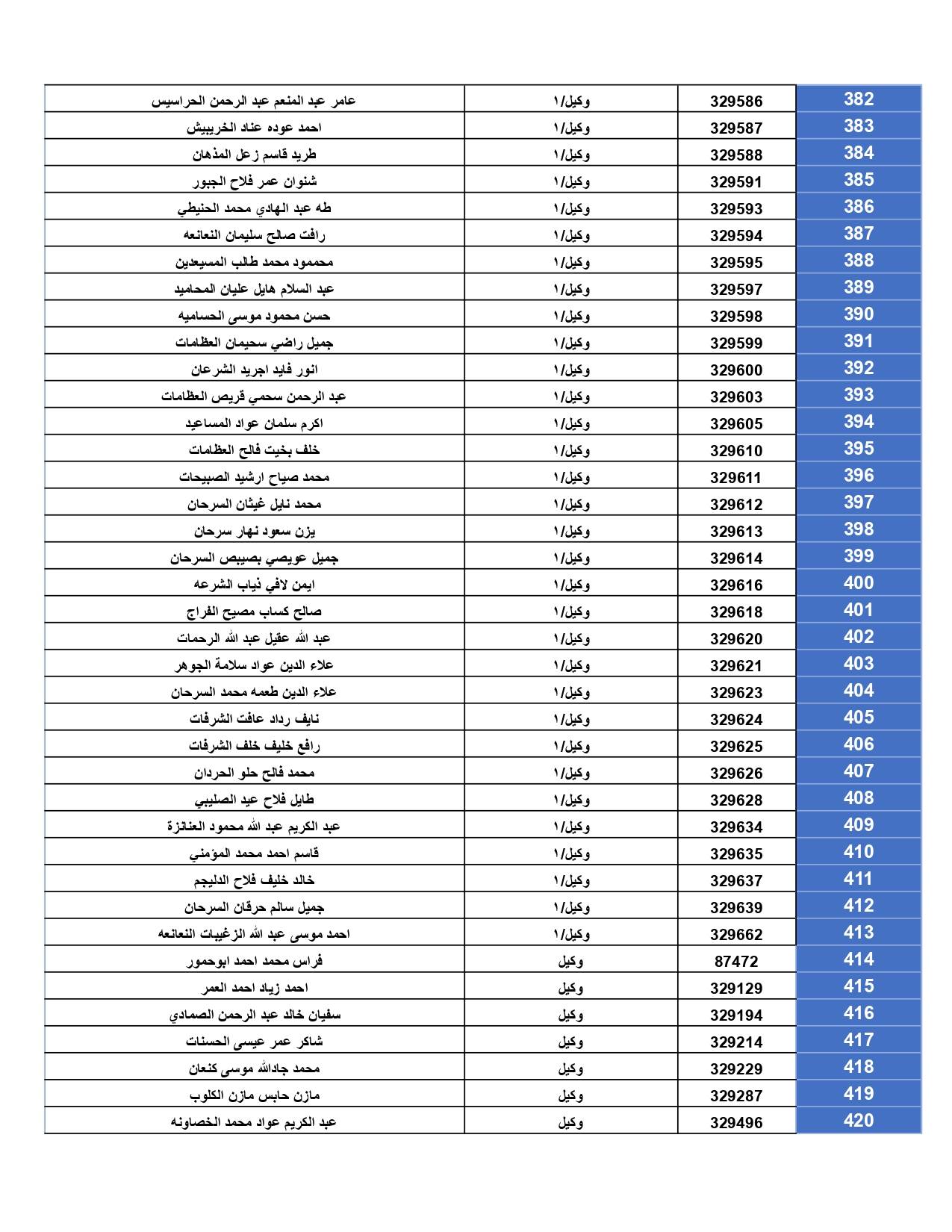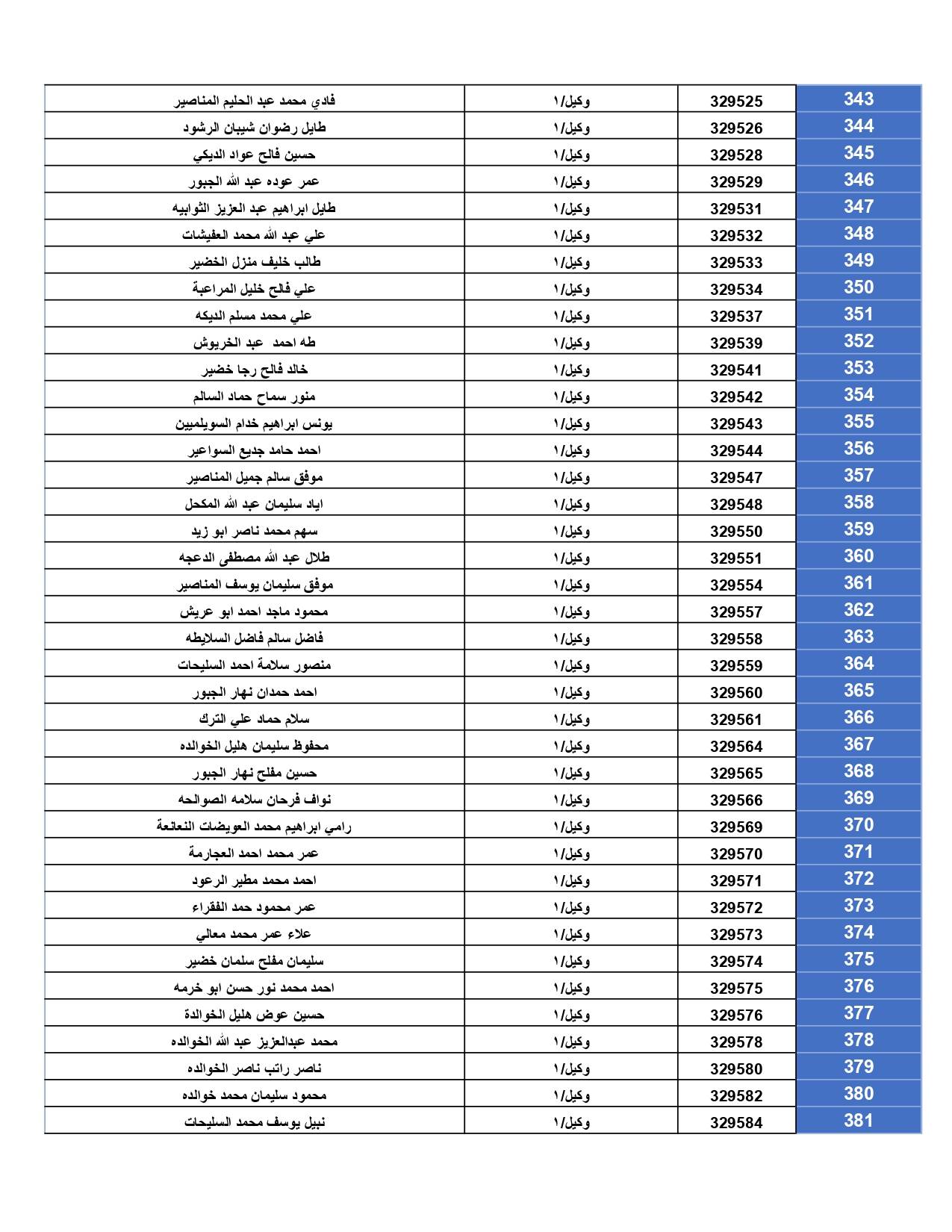 أعلنت القيادة العامة للقوات المسلحة الأردنية – الجيش العربي/ مديرية مؤسسة الإسكان والأشغال العسكرية، أن الضباط وضباط الصف والأفراد المبينة أسماءهم أدناه قد استحقوا قرض الإسكان العسكري (الخاص بالافراد)، وعلى الضباط المستفيدين من صندوق إسكان الضباط مراجعة بنك القاهرة عمان بكافة فروعه خلال ساعات الدوام الرسمي اعتباراً من يوم الخميس الموافق 8/05/2025 للحصول على القرض.