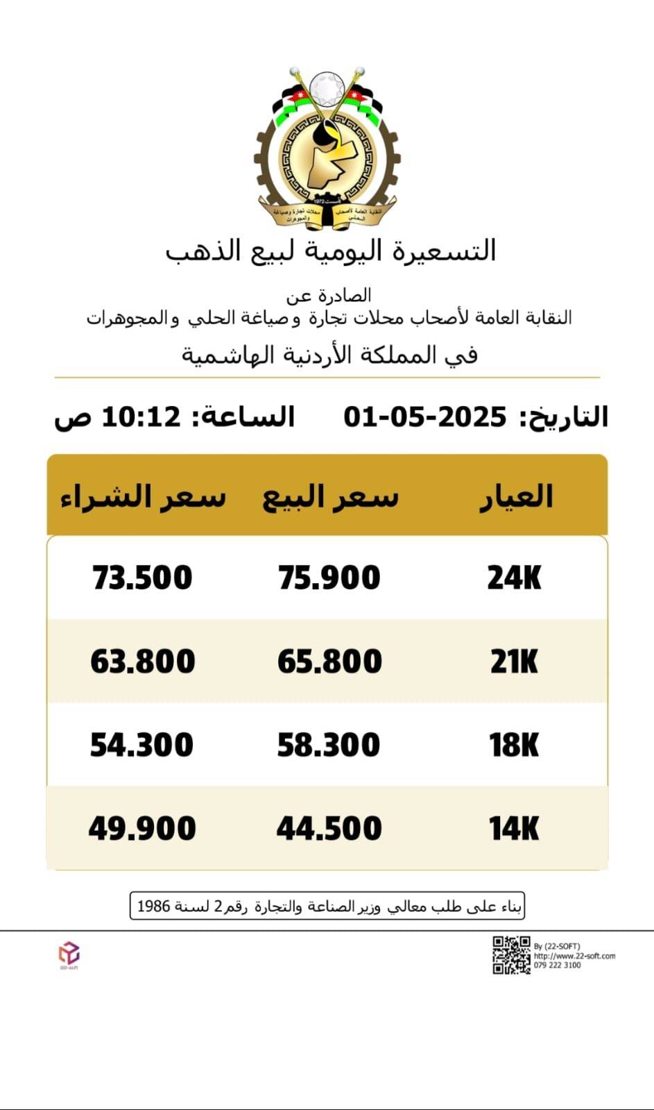 وبلغ سعر غرام الذهب 21 الأكثر طلبا لدى المواطنين 65.8 دينارا.