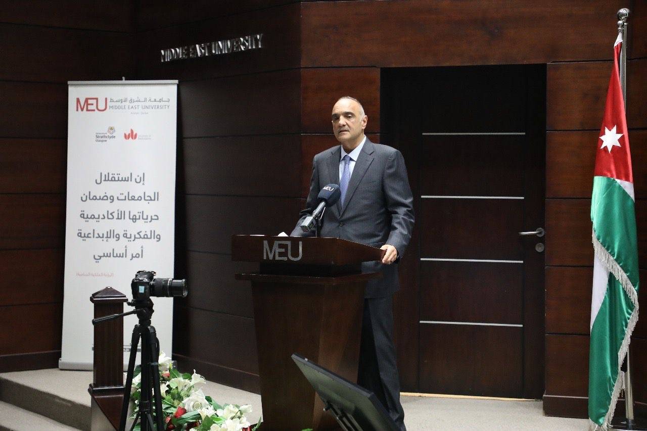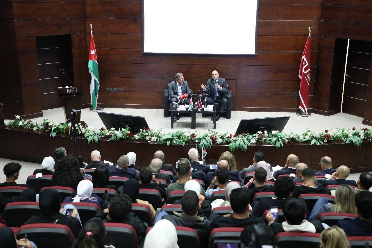 جاء ذلك خلال مشاركته في "حواريات الشرق الأوسط" التي نظّمتها جامعة الشرق الأوسط تحت عنوان: "الوطن والشباب… نظرة إلى المستقبل"، بحضور رئيس مجلس أمناء الجامعة الدكتور يعقوب ناصر الدين، ورئيسة الجامعة الأستاذة الدكتورة سلام المحادين، ونائب رئيس هيئة المديرين الدكتور أحمد ناصر الدين، إلى جانب عمداء الكليات وجمع من طلبة الجامعة.