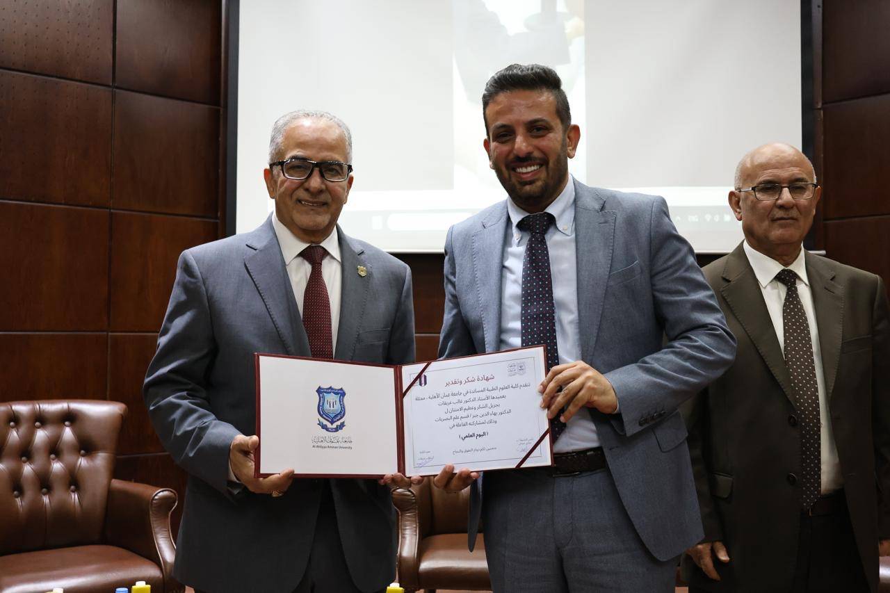 برعاية الأستاذ الدكتور ساري حمدان، رئيس جامعة عمان الأهلية، وبحضور عمداء الكليات ورئيس مركز الدراسات الدوائية والتشخيصية، وأعضاء الهيئة التدريسية وطلبة الكلية، نظمت كلية العلوم الطبية المساندة فعاليات اليوم العلمي السنوي، الذي جاء هذا العام تحت شعار :