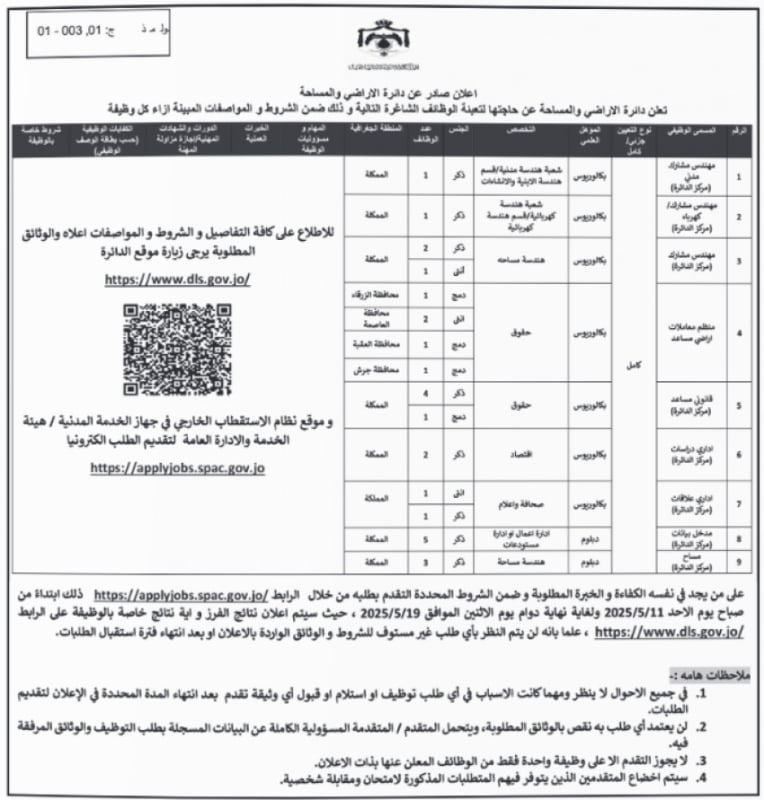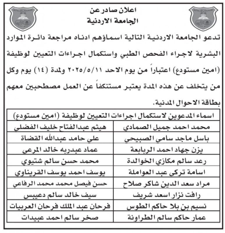 أعلنت عدد من المؤسسات الرسمية، اليوم الخميس، عن حاجتها لتعبئة وظائف شاغرة، فيما دعت أخرى عددًا من المرشحين لإجراء المقابلات الشخصية.