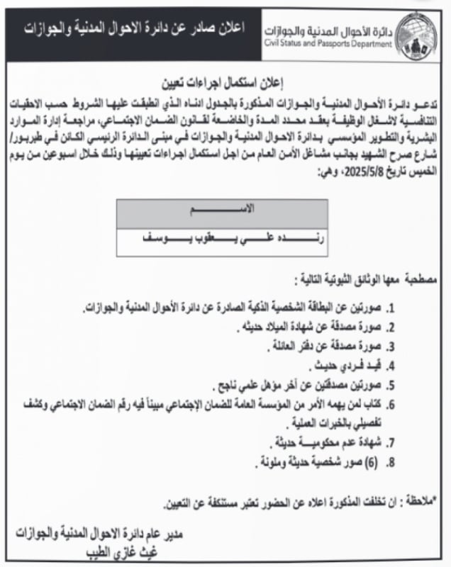 وظائف شاغرة ومدعوون للمقابلات - اسماء