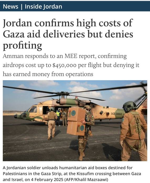 وكانت الجهات الأردنية الرسمية المختصة قد سارعت إلى نفي الادعاءات الأولية فور نشرها، مؤكدةً حينها أن الجهود التي تبذلها المملكة في تنظيم وتنفيذ عمليات الإنزال الجوي، بالتعاون مع شركاء دوليين، تأتي من منطلق التزامها القومي والإنساني الثابت تجاه الأشقاء الفلسطينيين في غزة، وأن هذه العمليات تتم دون أي مقابل مادي، وذلك للتخفيف من شدة الأزمة الإنسانية غير المسبوقة هناك.