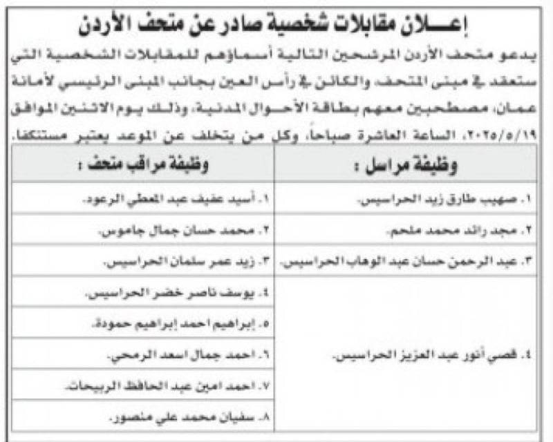 أعلنت عدد من المؤسسات الرسمية، اليوم الإثنين، عن حاجتها لتعبئة وظائف شاغرة، فيما دعت أخرى مرشحين لإجراء المقابلات الشخصية.