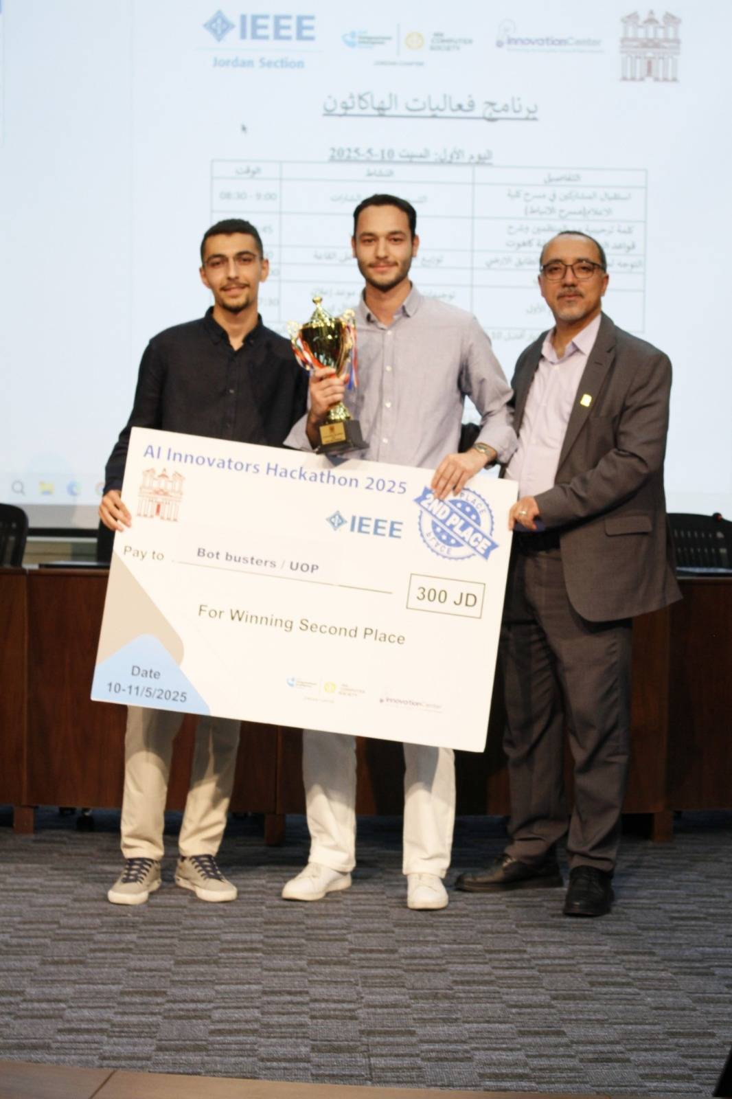 حصل فريق "بوت باسترز Bot Busters" من كلية تكنولوجيا المعلومات بجامعة البترا على المركز الثاني، وفريق "بترا تشالنجرز Petra Challengers" من الكلية ذاتها على المركز الرابع، في هاكاثون مبتكري الذكاء الاصطناعي 2025، الذي استضافته الجامعة مؤخرا. وشارك في المنافسة ثلاثة وخمسون فريقا يمثلون ثماني عشرة جامعة أردنية.