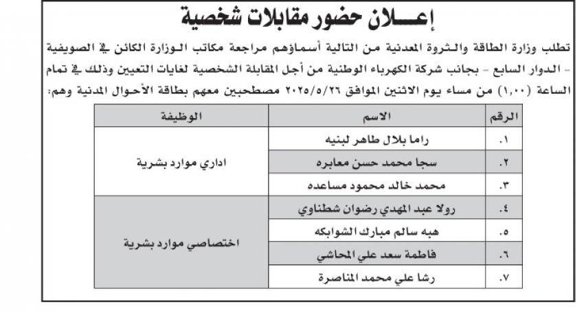 شواغر ومدعوون للمقابلات في مؤسسات رسمية (أسماء)