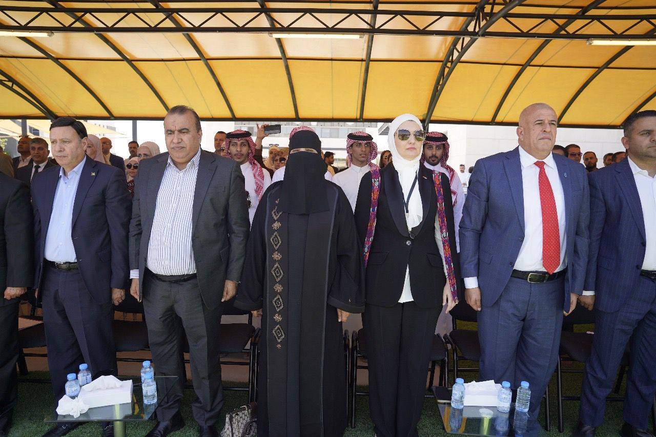 رعى الحفل رئيس مجلس أمناء الجامعة، الدكتور يعقوب ناصر الدين، بحضور رئيسة الجامعة الأستاذة الدكتورة سلام المحادين، وعمداء الكليات، وأعضاء الهيئتين التدريسية والإدارية.