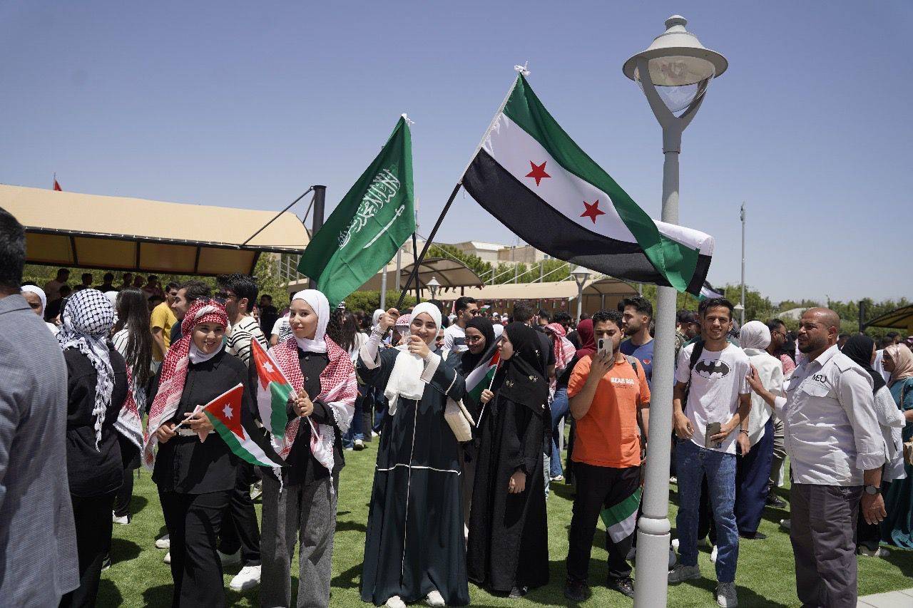 جسّدت جامعة الشرق الأوسط مشهدًا رمزيًا للوحدة العربية والانتماء الوطني، في احتفالها الرسمي بالذكرى التاسعة والسبعين لاستقلال المملكة الأردنية الهاشمية، بمشاركة وفود دبلوماسية، ونيابية، وأمنية رفيعة المستوى، ووجهاء المجتمع المحلي، وعدد من الشخصيات القيادية من قطاعات مختلفة، إلى جانب طلبة يمثلون أطياف الجاليات العربية، في فعالية عكست حيوية الهوية الوطنية، واتساع أفق الالتزام العربي المشترك.