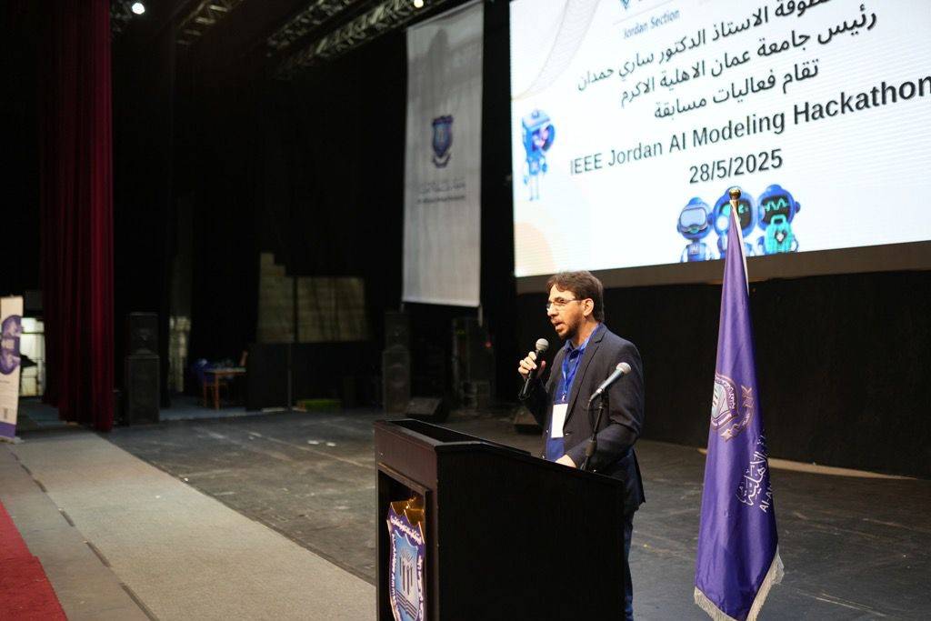 كما ألقى الأستاذ الدكتور ساري حمدان كلمة عبّر فيها عن فخره باستضافة جامعة عمان الأهلية لهذا الحدث العلمي المميز، مؤكدًا التزام الجامعة بدعم المبادرات التي تعزز من قدرات الطلبة في مجالات التكنولوجيا الحديثة