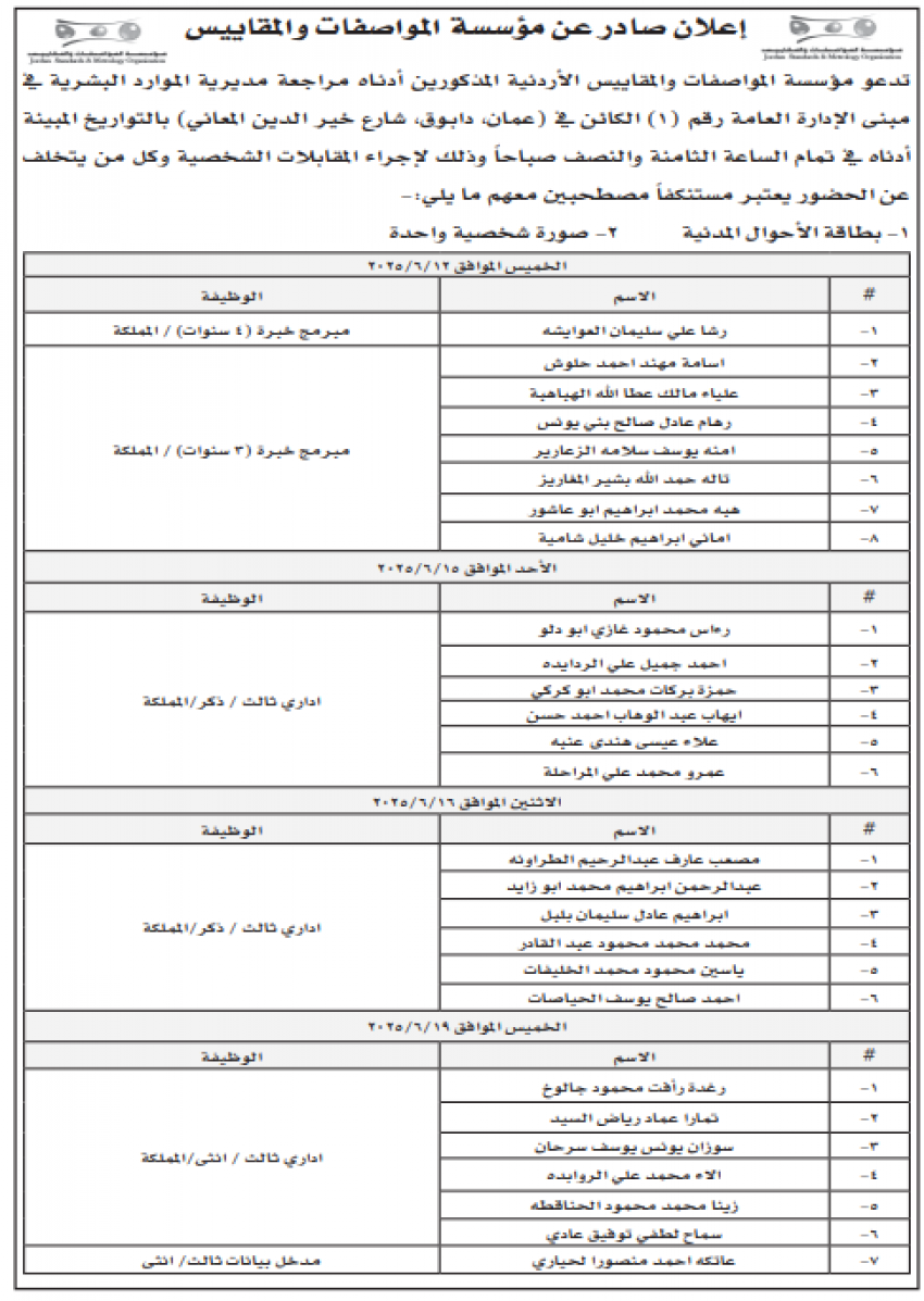 وظائف شاغرة ومدعوون لإجراء المقابلات (أسماء)