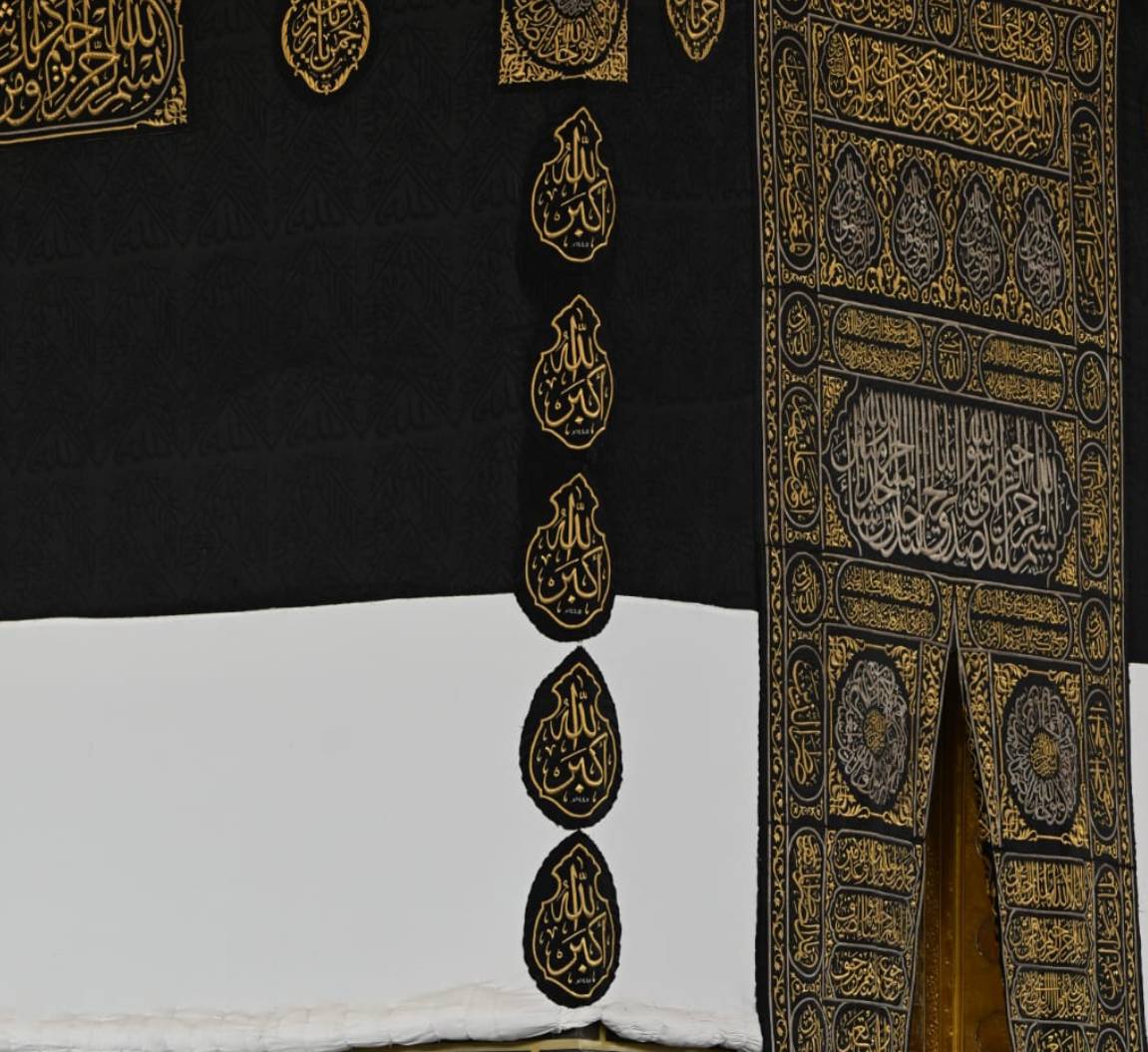 وبين أن الكعبة تحتوي على 5 قناديل يعلوها قنديل "الله اكبر" دلالة لبداية الطواف، إضافة إلى أنها تحتوي على 4 صمديات وعلى 7400 خيط وعلى 54 منسوج مذهب.