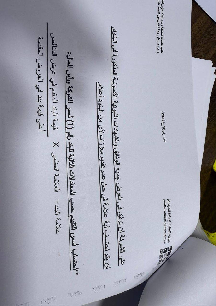 من غير المعقول أن يُشترط في عطاء بسيط كهذا مشاريع سابقة بقيمة مئات الآلاف من الدنانير، أو سنوات خبرة طويلة تفوق أحيانًا عمر بعض الشركات التي أثبتت كفاءتها الميدانية. المنطق المهني يقول إن تقييم الأداء يجب أن يستند إلى النتائج الفعلية وجودة الخدمة، لا على عمر الشركة أو حجم مشاريعها السابقة.