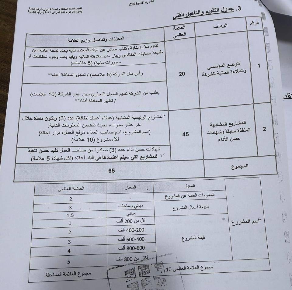 إن الواجب المهني والوطني يقتضي إعادة النظر فورًا في الشروط الفنية للعطاءات، بما يحقق العدالة بين جميع الشركات المتنافسة، ويضمن إدارة سليمة للمال العام، ويحمي السوق من الفساد والاحتكار. كما ندعو الجهات الرقابية المختصة إلى التدخل العاجل في حال استمرار هذه الممارسات التي تُضعف الثقة في نزاهة وشفافية العمل الحكومي.