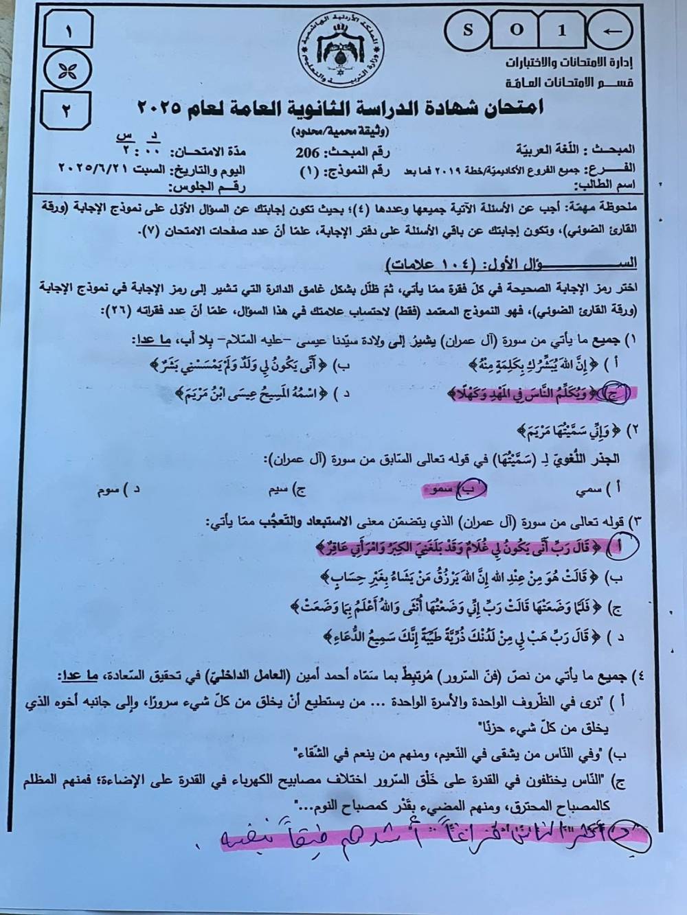 وصف عدد من طلاب "التوجيهي" إمتحان اللغة العربية بين سهل ومتوسط