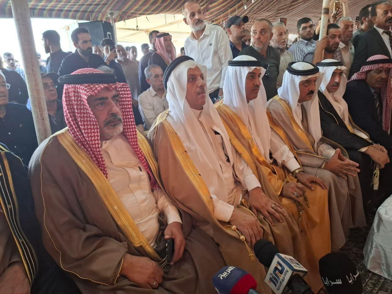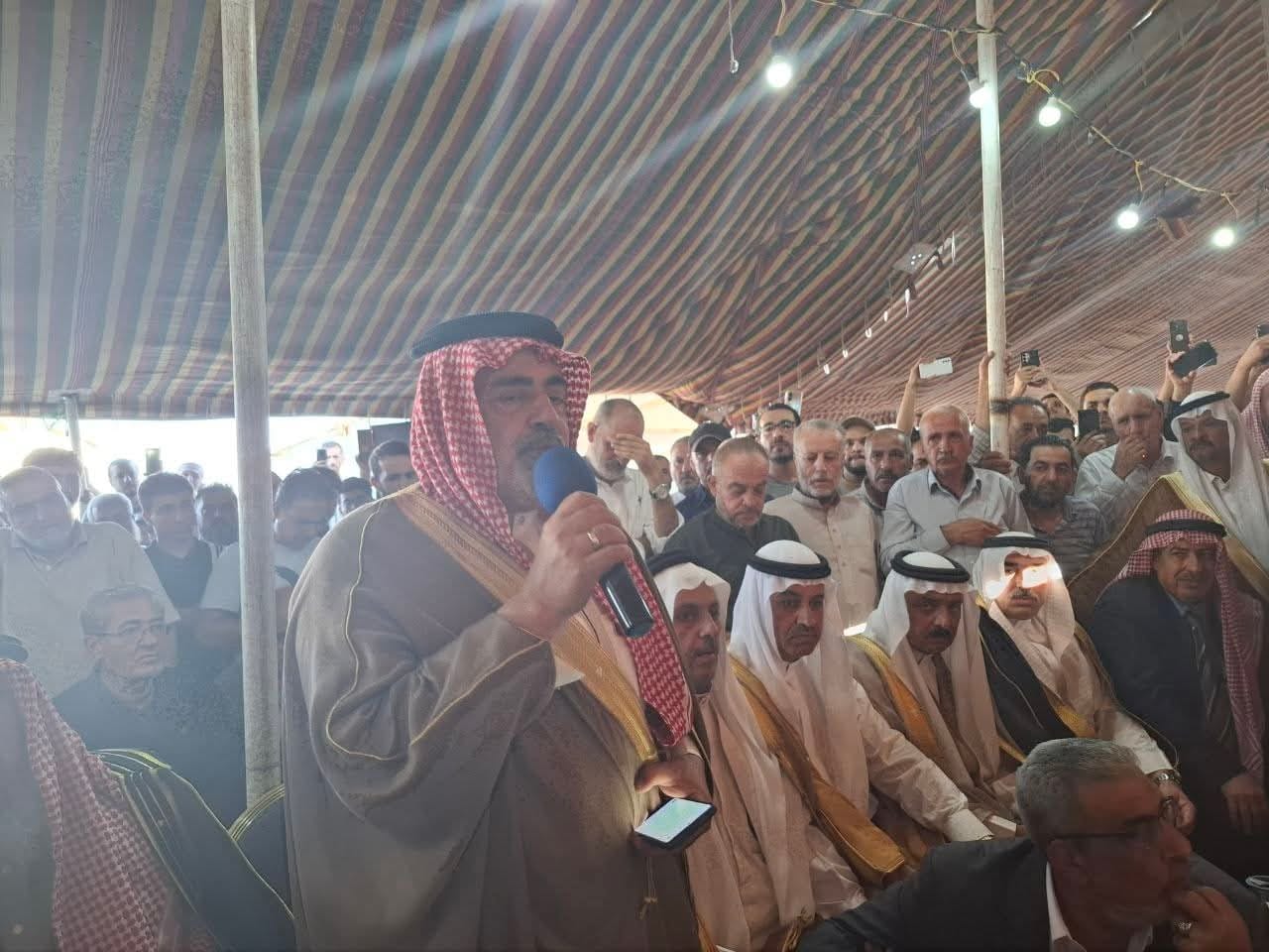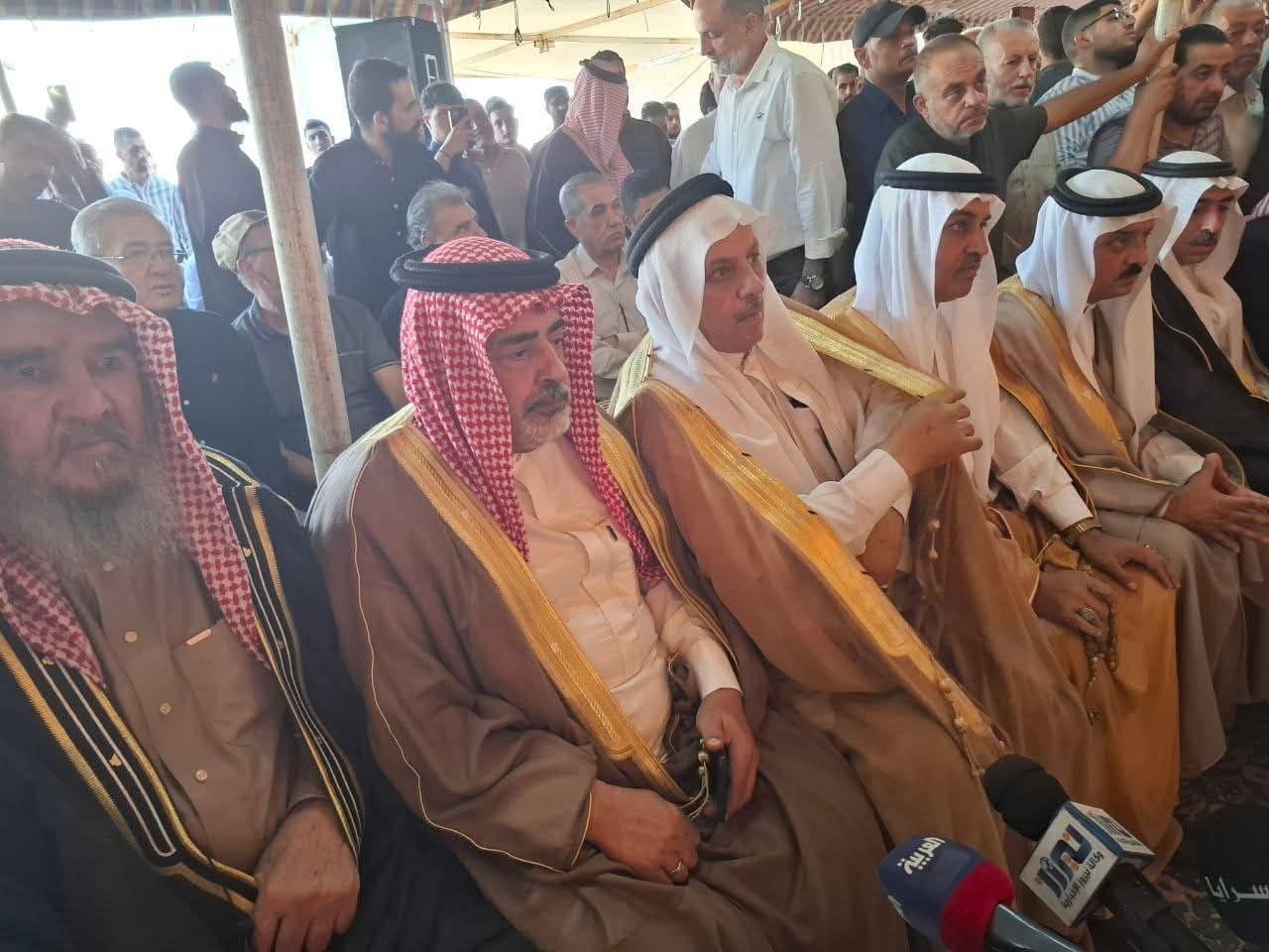 وأضاف العجارمة إننا جئنا بهذه الجاهة إلى مضارب عشائر الفالوجة كرامة لكم ولنعزيكم بابنكم وابننا المغدور عباده عمر عرابي الفالوجي الذي طالته يد الغدر من مجرم لديه سوابق جرمية لمطالب معكم باعدامه ليكون مجتمعنا الأردني آمن ومستقر في هذا الوطن الكريم بأهله وقيادته الهاشمية الحكيمة.
