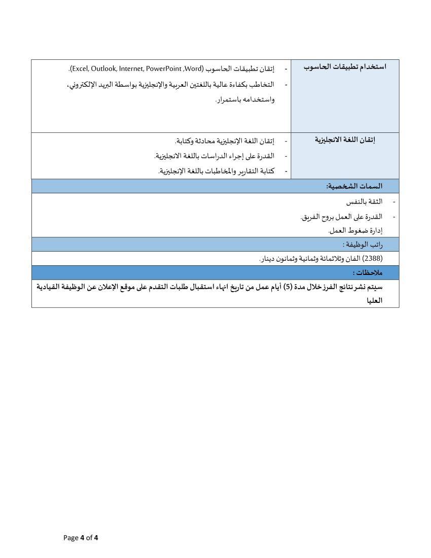 أعلنت رئاسة الوزراء اليوم الاربعاء، عن توفر شاغر أمين عام وزارة التربية والتعليم لشؤون التعليم المهني والتقني.