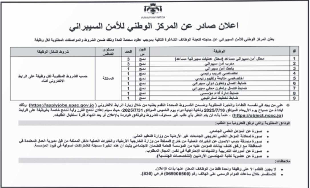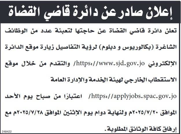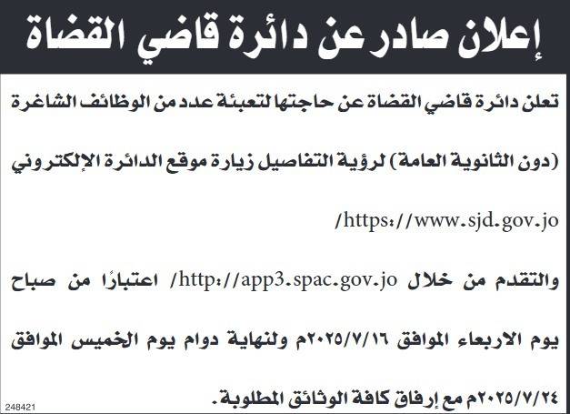 اعلنت مؤسسات حكومية اليوم الاربعاء عن حاجتها لتعبئة وظائف شاغرة.