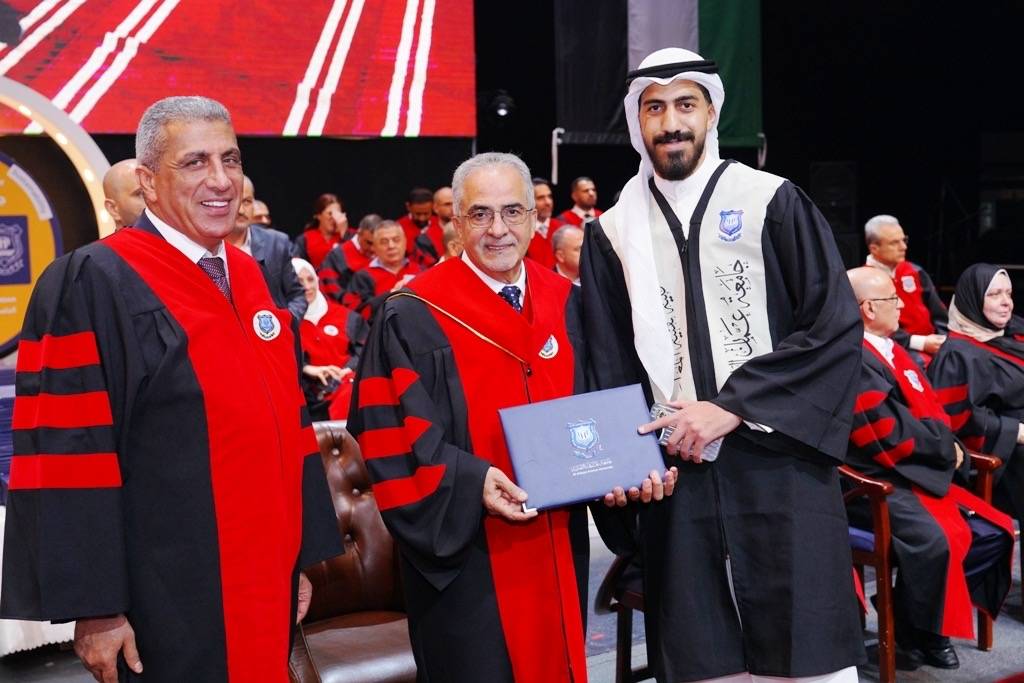 رعى الاستاذ الدكتور ساري حمدان رئيس جامعة عمان الاهلية مساء أمس 23-7-2025 على مسرح الأرينا احتفال الجامعة لليوم الثاني بتخريج طلبتها للفصل الثاني 2024-2025 من الفوج (32) لكليات " الصيدلة ، العلوم الطبية المساندة ، التمريض ، تقنية المعلومات ، العمارة والتصميم ، الهندسة ، التكنولوجيا الزراعية " بحضور نائب رئيس الجامعة أ.د. احمد حمدان ومساعد الرئيس لشؤون الاعتماد والجودة والتخطيط الدكتورإياد شعبان والسادة العمداء وأعضاء الهيئة التدريسية وعدد من أعضاء الهيئة الإدارية وحشد كبير من ذوي الطلبة الخريجين والمدعوين .