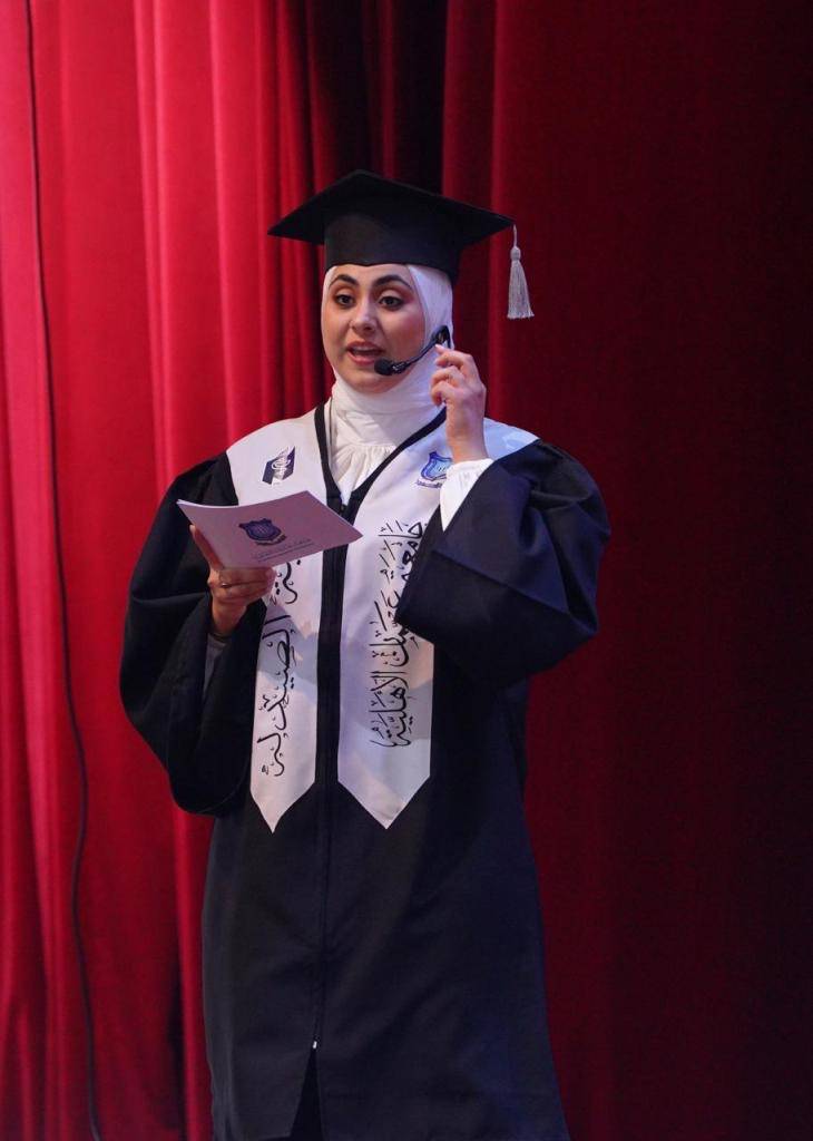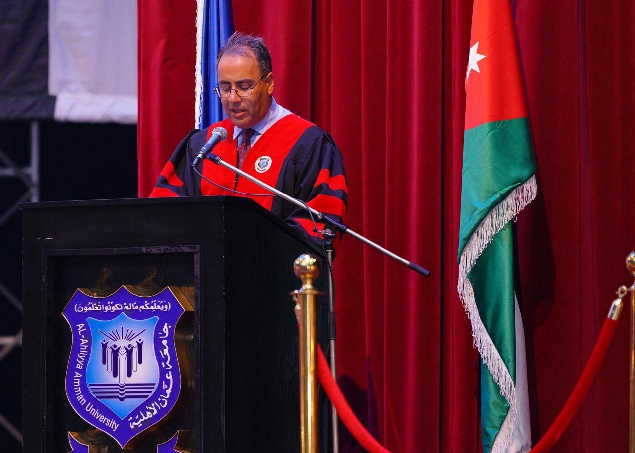 في هذا اليوم المشرق، الذي يغمرنا بالفخر والاعتزاز، يسعدني ويشرفني أن أرحب بكم أجمل ترحيب في رحاب جامعتكم، جامعة عمّان الأهلية، أولى الجامعات الخاصة في الأردن، حيث نجتمع لنحتفل بثمرة أعوام من الجهد والعطاء، ونكرّم جيلًا من الشباب الطموح، من خريجي الفصل الدراسي الثاني 2024 – 2025 لليوم الثاني لحفل التخريج 2025 لكليات :