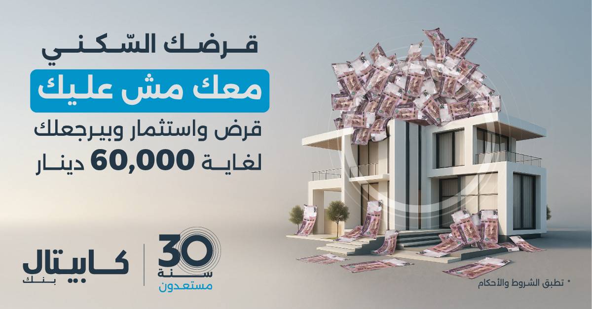 كابيتال بنك يطلق حملة استثنائية لقروض الإسكان مصحوبة بخطة استثمارية تمنح العملاء عائداً مالياً يصل إلى 60 ألف دينار في نهاية عمر القرض