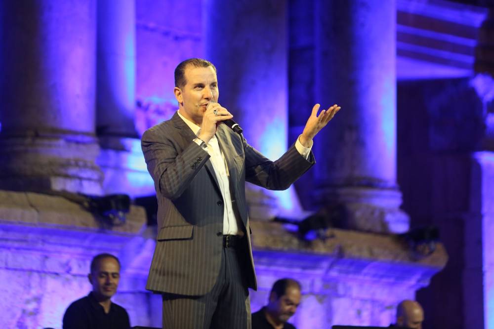 وأقبل المطرب ثمين حداد ليكتب اسم الوطن بصوته فشاركه الجمهور اغنية لاكتب اسمك يا بلادي ع الشمس الما بتغيب.