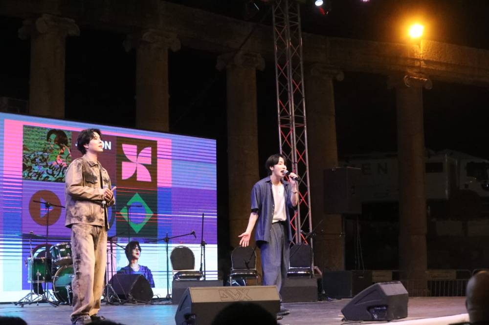 واستكمل الحفل بعرض فني للفنانين الكوريين "kisu " و "jung hoon ”الذي كان جمهور جرش في انتظارهم ليعيشوا تجربة جديدة وفريدة من نوعها مع الفن الكوري الحديث.