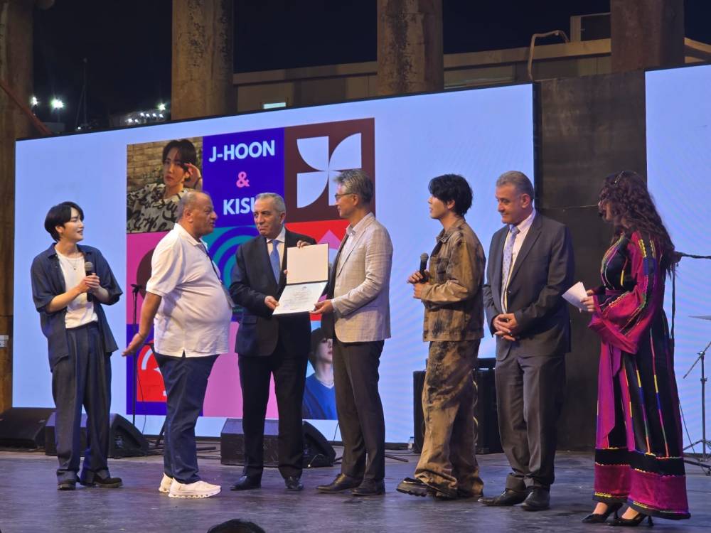 وكرم وزير الثقافة الأردني مصطفى الرواشدة و المدير التنفيذي لمهرجان جرش ايمن سماوي و السفير الكوري كيم بيل ووالفانيين وشكرهم على هذه الليلة المميزة وفنهم المميز.