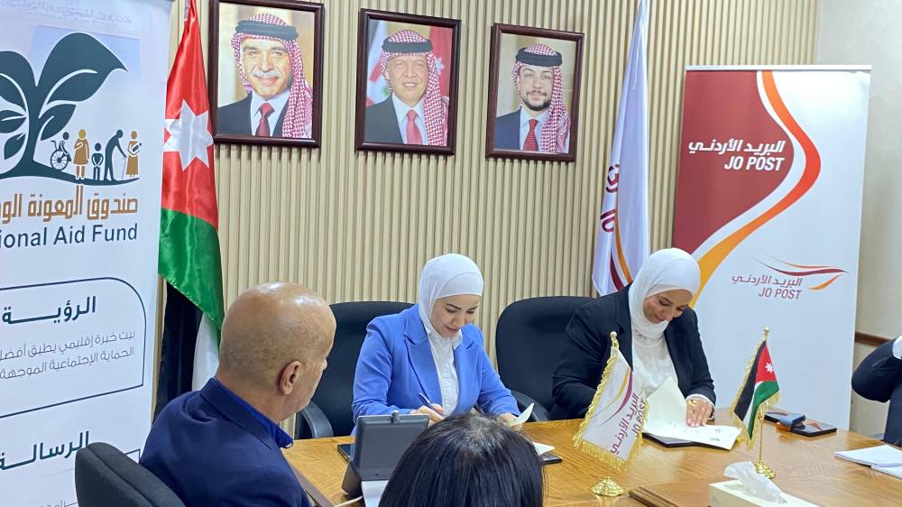 ووقع الاتفاقية مدير عام البريد الأردني هنادي الطيب ومدير عام صندوق المعونة الوطنية ختام شنيكات بحضور رئيس مجلس إدارة البريد الأردني سامي كامل الداوود.