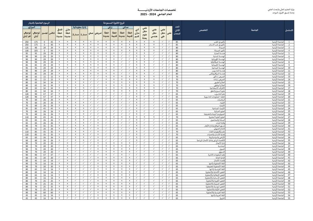 نشرت وحدة تنسيق القبول الموحد التابعة لوزارة التعليم العالي، قوائم أسعار ساعات التخصصات في الجامعات الرسمية للعام الدراسي 2024/2025، وهي ذات الأسعار التي ستطبق على الطلبة المقبولين للعام 2025/2026، بعد اجتيازهم امتحان الثانوية العامة.