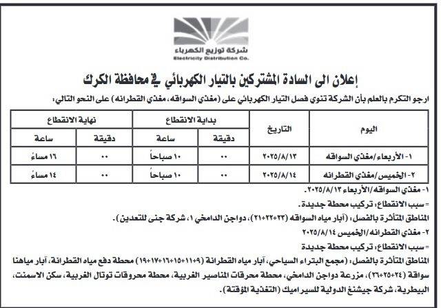 84523-- فصل مؤقت للكهرباء عن مناطق في المملكة -أسماء :: صوت عمان الإخباري