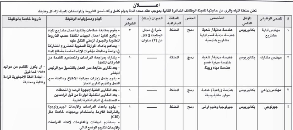 84960-- وظائف شاغرة في سلطة المياه - تفاصيل :: صوت عمان الإخباري